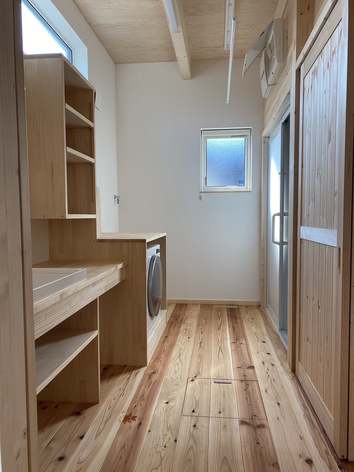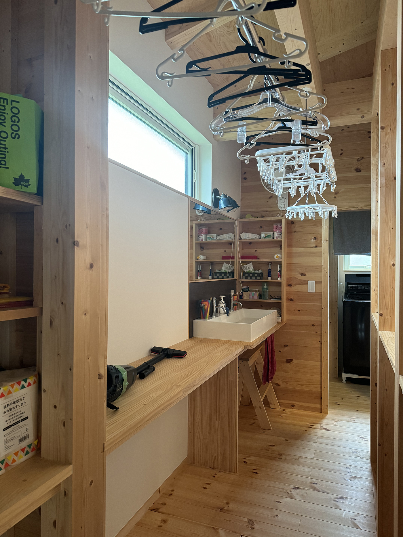使いやすいランドリールームを設計するためには、まず広さを確保しなければなりません。洗濯機・乾燥機・洗濯物を干すスペース、収納棚を置ける十分な広さとして、最低でも2~3畳程度が必要です。